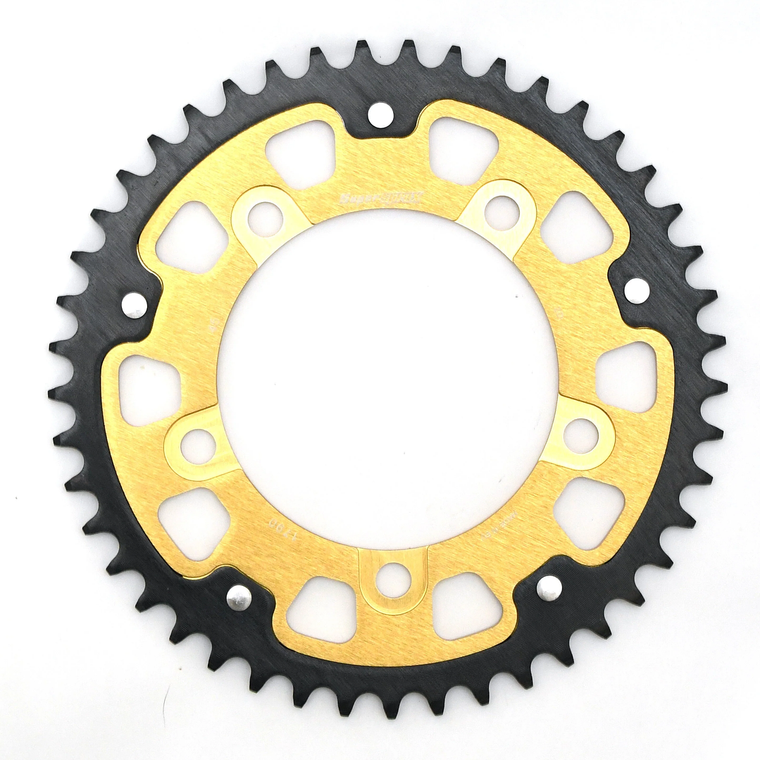 - Los dientes de acero son un poco más gruesos en la punta para evitar que se enganchen y duran 3 veces más que el aluminio. El núcleo de aluminio es un 70% más ligero que el acero, lo que reduce la masa giratoria.