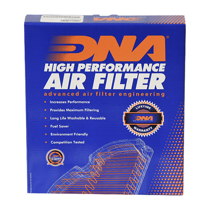 El filtro de aire DNA esta diseñado para aumentar HP's y la aceleración mientras ofrece una eficiencia de filtrado extremadamente alta (entre 98-99%). Están diseñados para ajustarse a la caja de aire original. Ademas Funciona con la electrónica que el vehículo trae de fabrica.